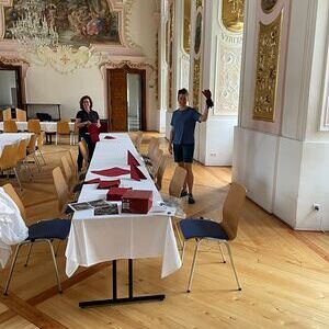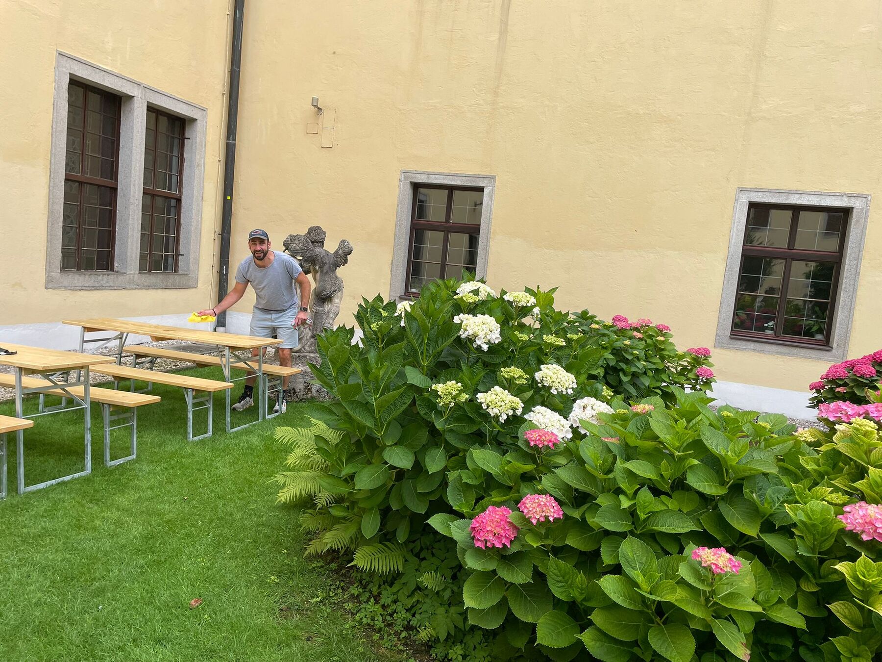 Tische und Bänke im Klostergarten wurden aufgebaut, das Sommerrefektorium wurde dekoriert und eingedeckt, die Tombolapreise wurden vorbereitet, Beschilderungen wurden angebracht – und noch viele weitere kleine wie große Handgriffe, die zum Gelingen des Fests erforderlich sind.